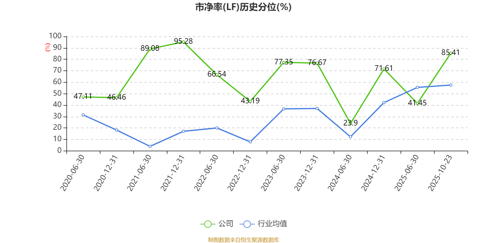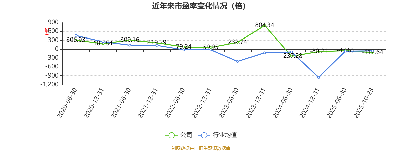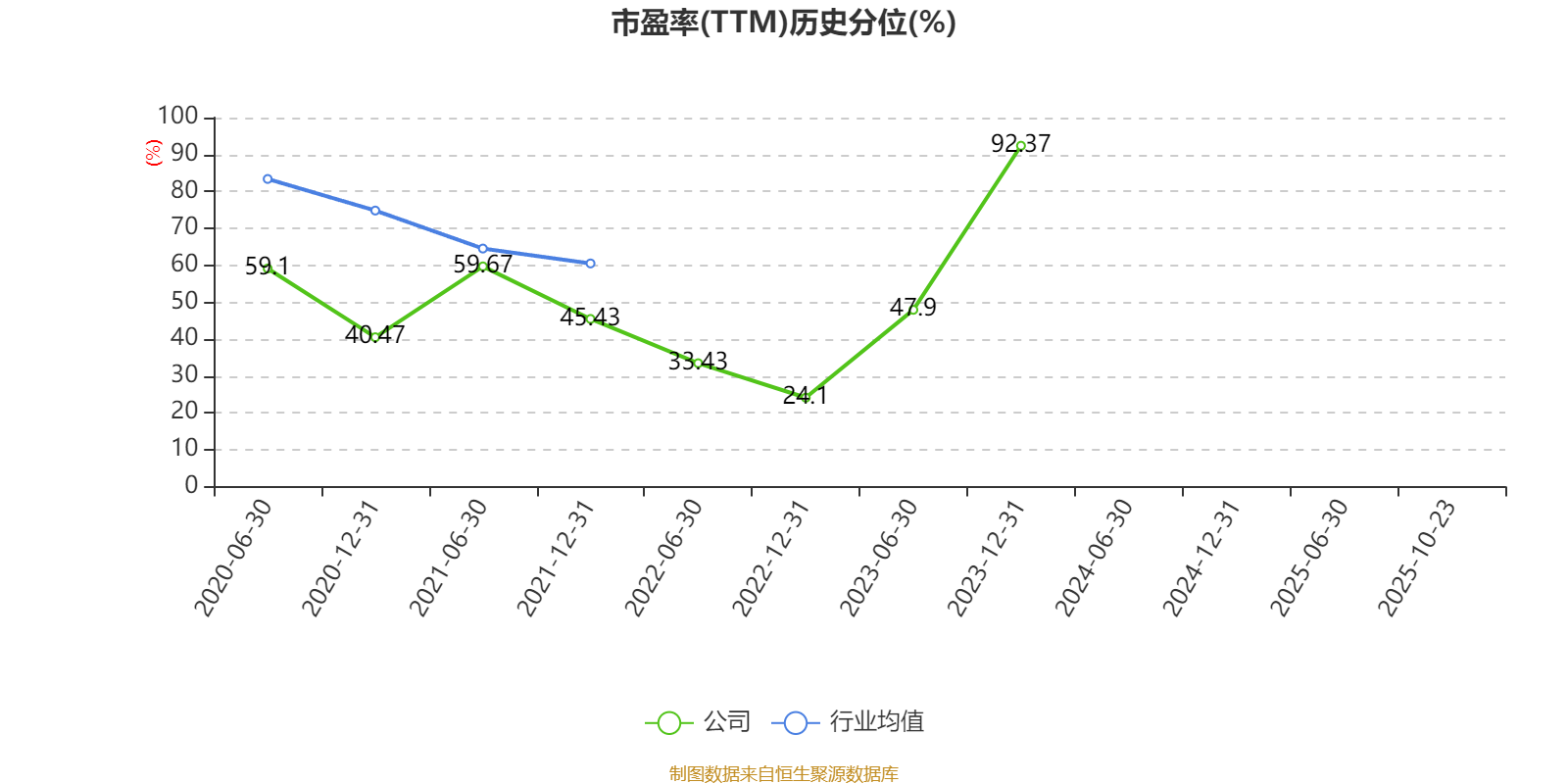 市盈率、市净率为负时,不显示当期分位数,会导致折线图中断。