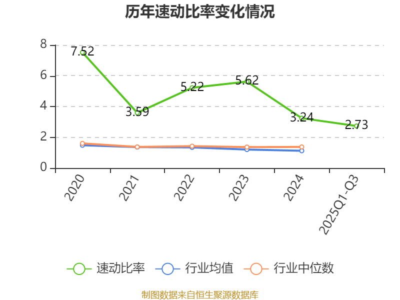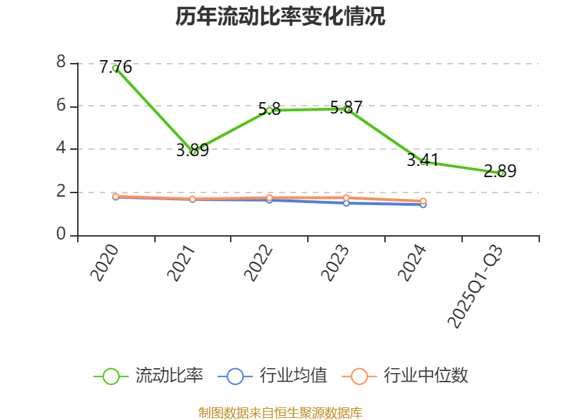 2025年前三季度,公司流动比率为2.89,速动比率为2.73。