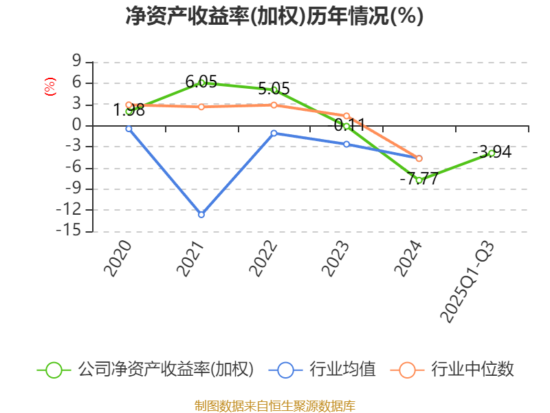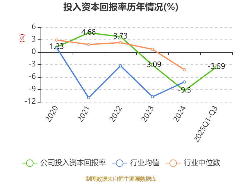 盈利能力方面, 2025年前三季度公司加权平均净资产收益率为-3.94%,同比上升1.93个百分点。公司2025年前三季度投入资本回报率为-3.59%,较上年同期上升3.51个百分点。