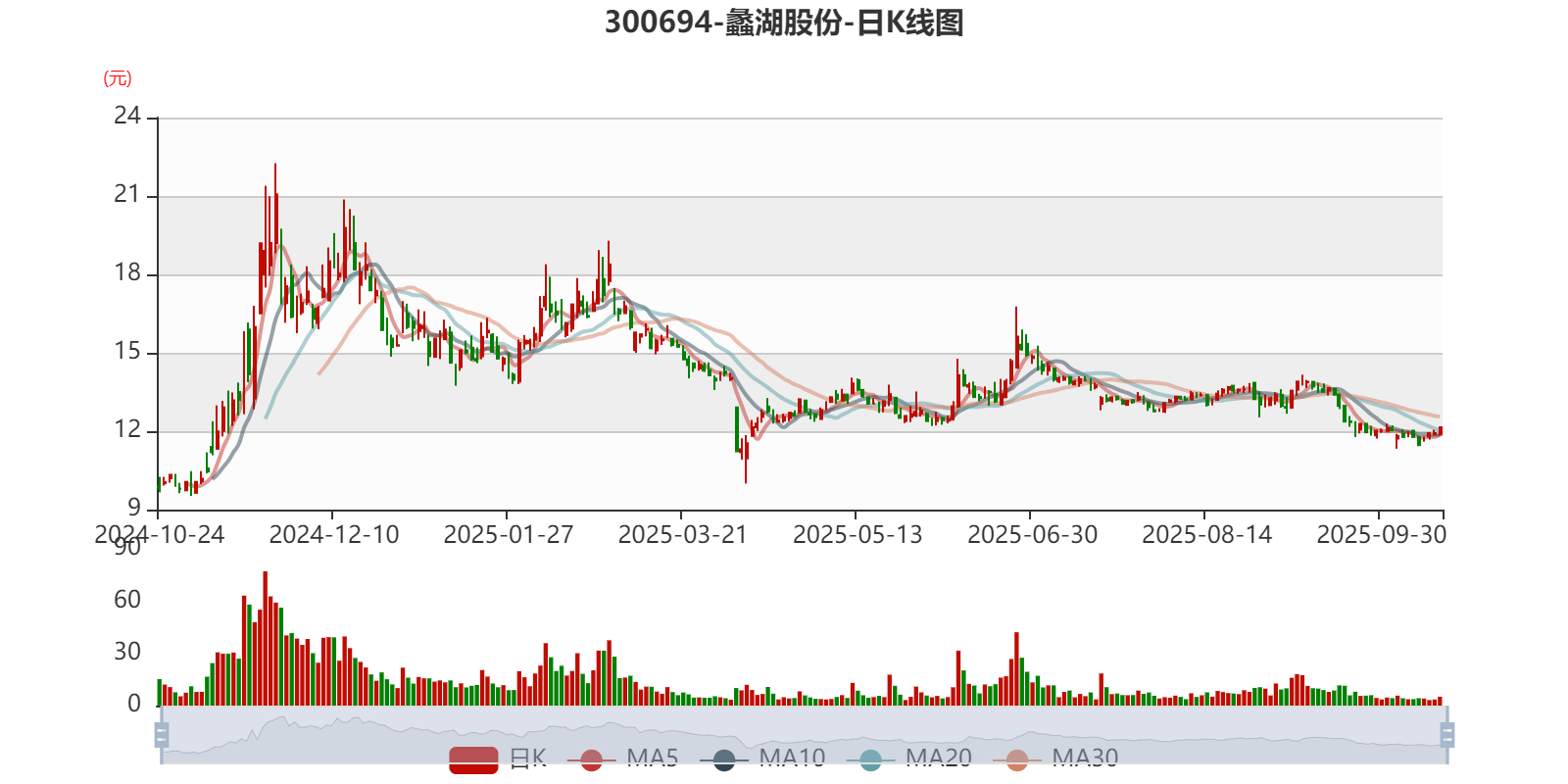 中证智能财讯蠡湖股份(300694)10月24日披露2025年第三季度报告。前三季度公司实现营业总收入10.38亿元,同比下降10.85%;归母净利润1813.15万元,同比下降57.14%;扣非净利润1852.37万元,同比下降58.56%;经营活动产生的现金流量净额为1.5亿元,同比下降25.61%;报告期内,蠡湖股份基本每股收益为0.08元,加权平均净资产收益率为1.31%。