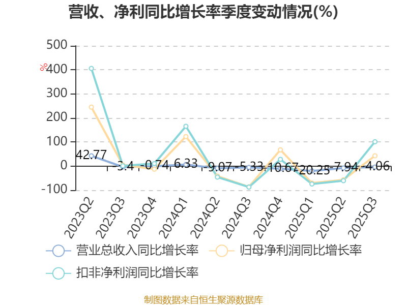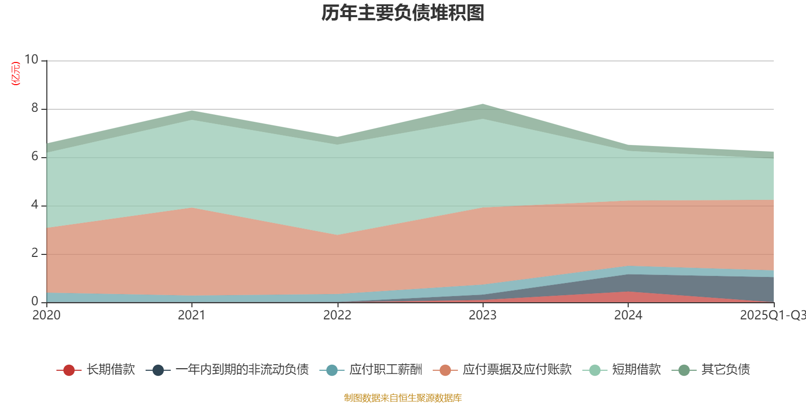 负债重大变化方面,截至2025年三季度末,公司长期借款较上年末减少100%,占公司总资产比重下降2.19个百分点;一年内到期的非流动负债较上年末增加45.79%,占公司总资产比重上升1.66个百分点;短期借款较上年末减少17.13%,占公司总资产比重下降1.63个百分点;应付票据及应付账款较上年末增加7.97%,占公司总资产比重上升1.23个百分点。