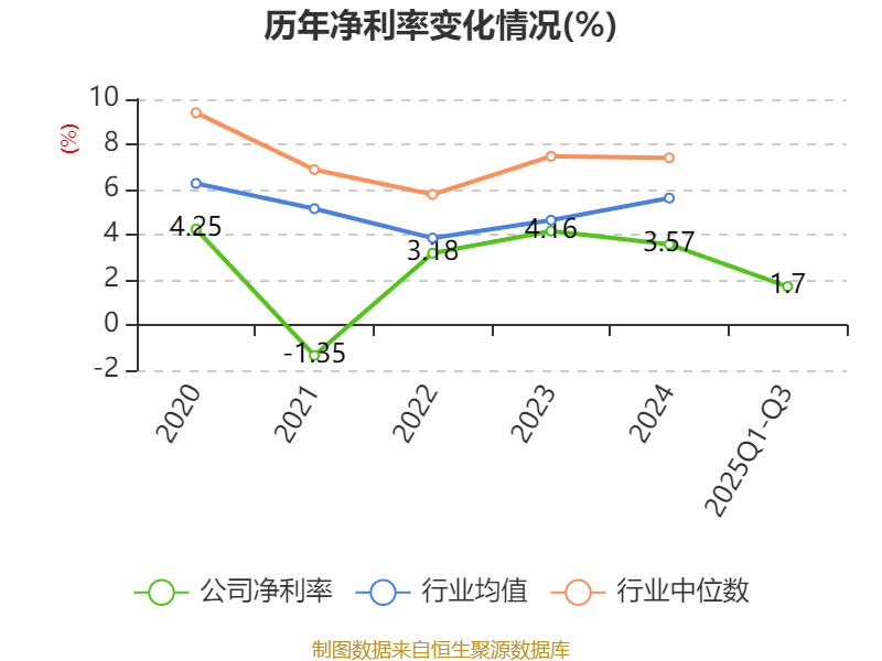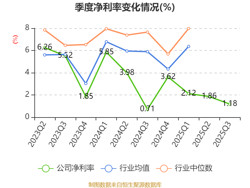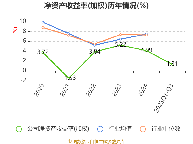 盈利能力方面, 2025年前三季度公司加权平均净资产收益率为1.31%,同比下降1.82个百分点。公司2025年前三季度投入资本回报率为0.91%,较上年同期下降1.64个百分点。