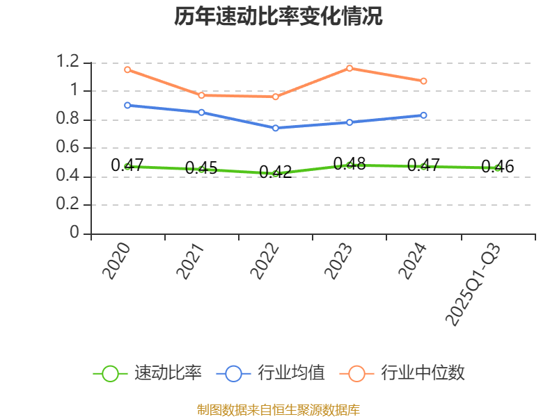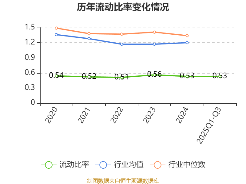 2025年前三季度,公司流动比率为0.53,速动比率为0.46。