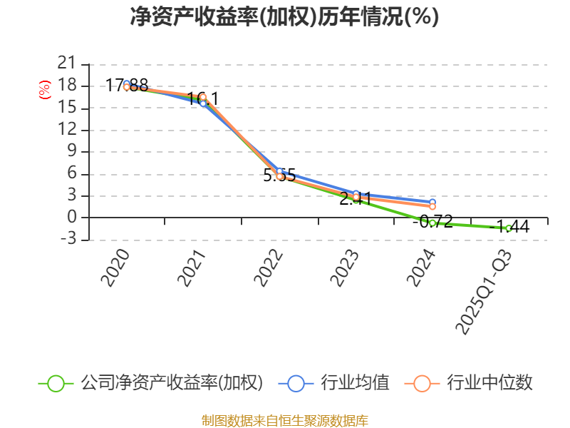 盈利能力方面, 2025年前三季度公司加权平均净资产收益率为-1.44%,同比上升3.13个百分点。公司2025年前三季度投入资本回报率为0.83%,较上年同期上升1.46个百分点。