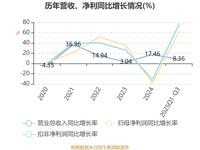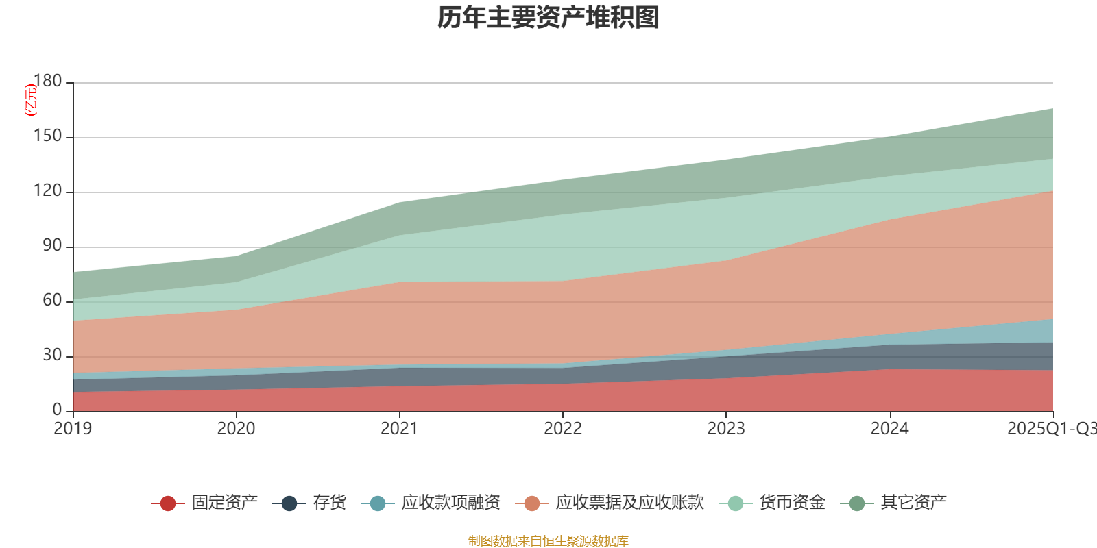 资产重大变化方面,截至2025年三季度末,公司货币资金较上年末减少26.35%,占公司总资产比重下降5.25个百分点;应收款项融资较上年末增加116.87%,占公司总资产比重上升3.79个百分点;固定资产较上年末减少2.4%,占公司总资产比重下降1.76个百分点;预付款项较上年末增加109.09%,占公司总资产比重上升1.22个百分点。