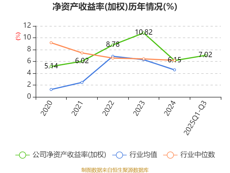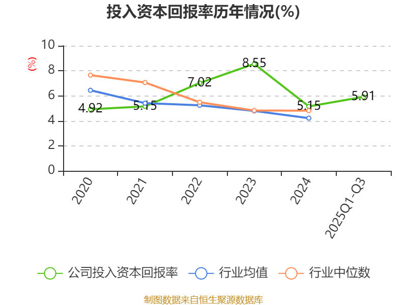盈利能力方面, 2025年前三季度公司加权平均净资产收益率为7.02%,同比上升2.42个百分点。公司2025年前三季度投入资本回报率为5.91%,较上年同期上升2.08个百分点。