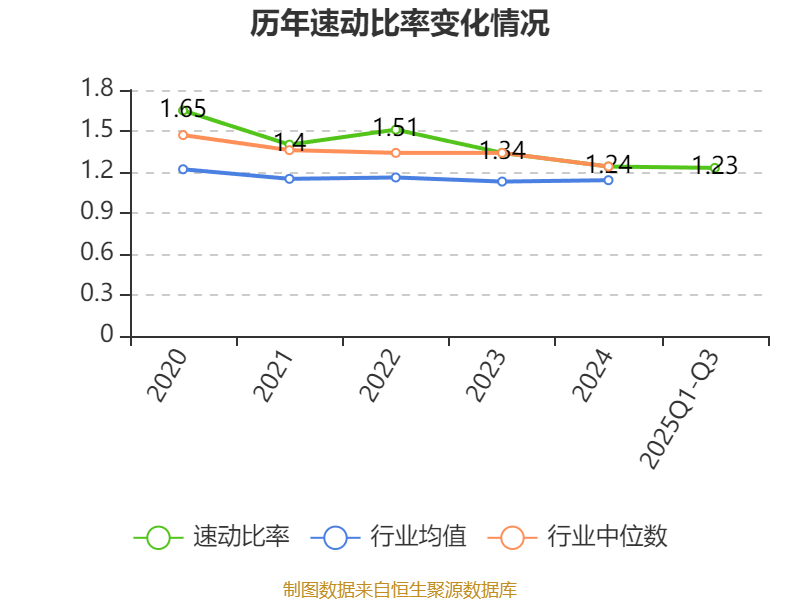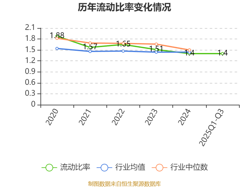 2025年前三季度,公司流动比率为1.4,速动比率为1.23。