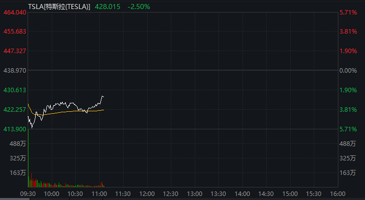 当地时间10月23日,特斯拉美股大幅低开,盘初进一步走低,一度跌超5.7%,截至发稿,跌幅收窄至2.5%。