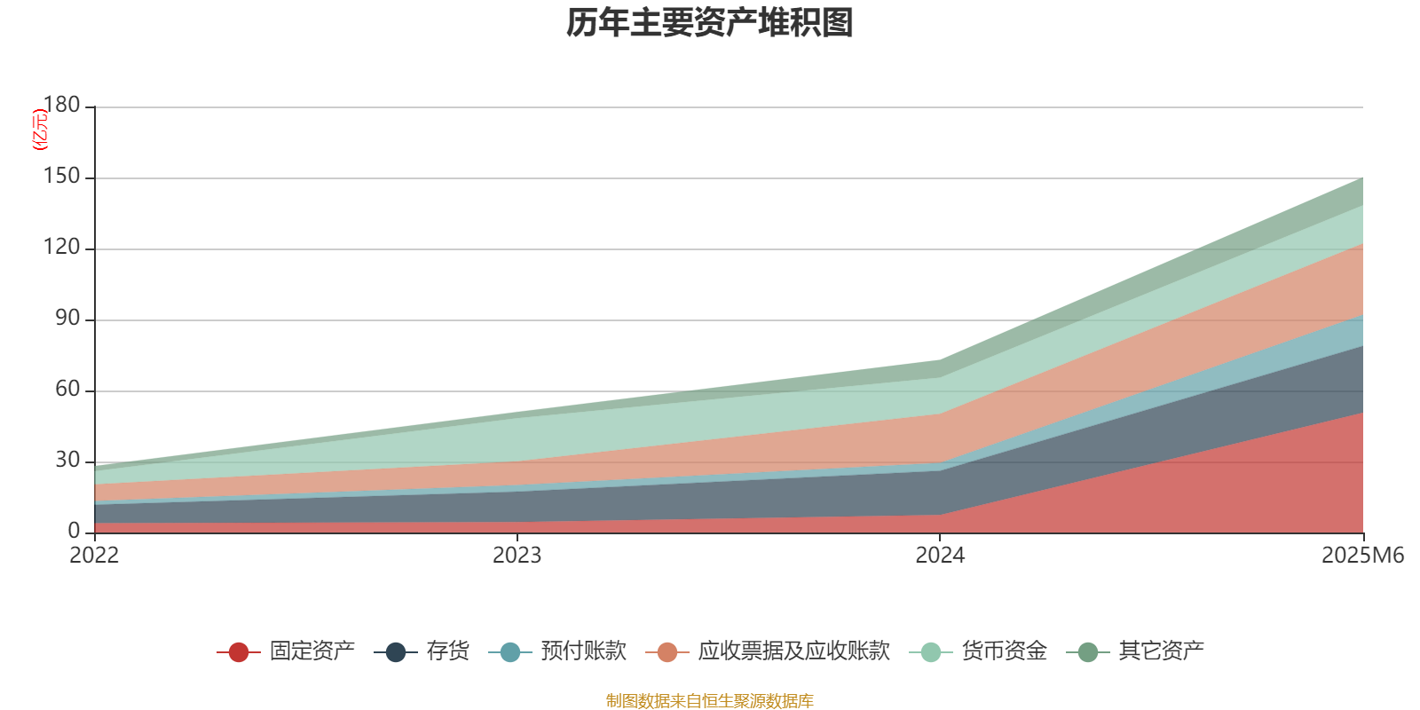 资产重大变化方面,截至2025年6月,公司固定资产较上期末增加583.88%,占公司总资产比重上升23.6个百分点;货币资金较上期末增加5.53%,占公司总资产比重下降10.21个百分点;应收票据及应收账款较上期末增加45.46%,占公司总资产比重下降8.33个百分点;存货较上期末增加50.94%,占公司总资产比重下降6.83个百分点。