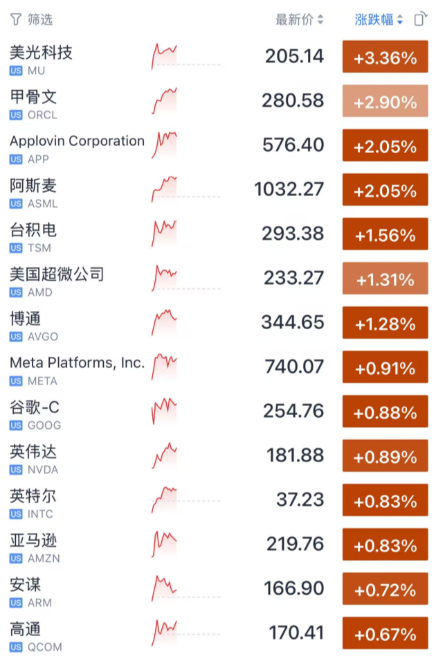 科技股普遍上涨。