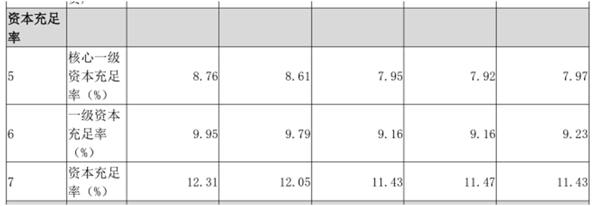 根据该行2025年第二季度第三支柱信息披露,截至2025年6月30日,该行核心一级资本充足率、一级资本充足率、资本充足率分别为8.76%、9.95%和12.31%。