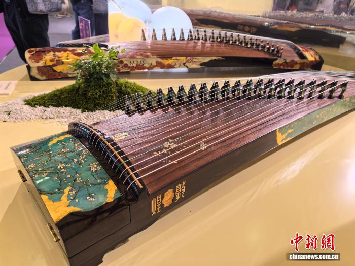 MusicChina2025上展出的系列民族乐器与世界名作《杏花盛开》结合,大漆工艺的千年古韵与自然舒展的杏花树融合,传统民族乐器便有了印象派的生命律动。(中新网记者陈静摄)