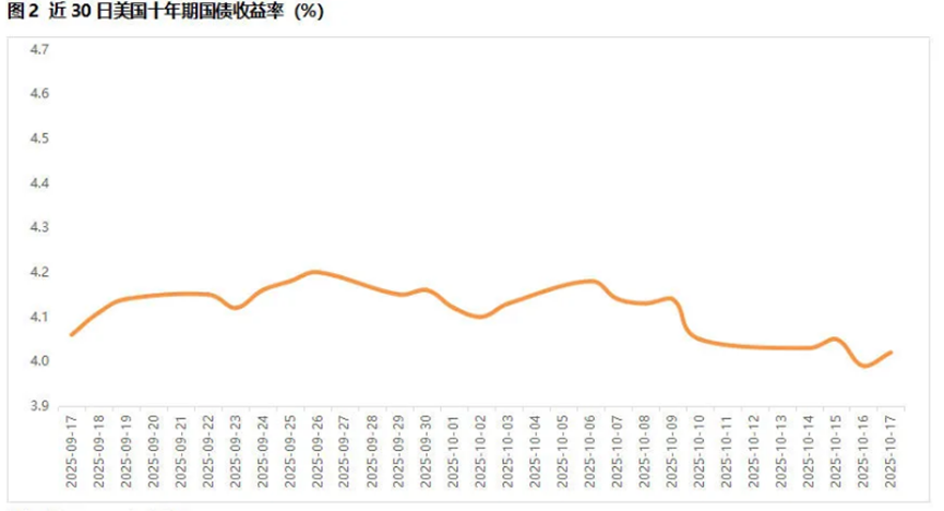 关税政策尚未形成较强的普遍通胀现象,预计9月CPI通胀压力仍将较为温和,结合鲍威尔暗示降息的发言,我们认为9月CPI数据可能会进一步强化市场对10月美联储降息的预期,美债收益率仍将有下行动力;不过,考虑到上周五特朗普对华关税态度有所软化,中美贸易关系接下来可能出现边际缓和,加之美国地区性银行信贷风险属于短期冲击,预计市场风险情绪将在本周有所回暖,这将对美债收益率形成上行压力。