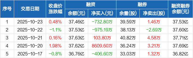 光大证券:融资净偿还732.8万元,融资余额37.46亿元(10-23)