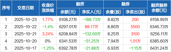 百隆东方:融资净偿还188.73万元,融资余额6108.27万元(10-23)