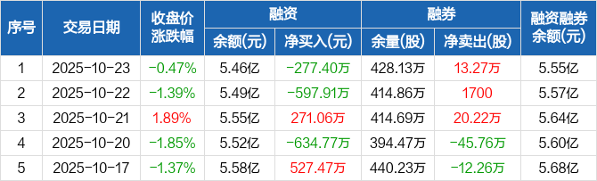 和邦生物:融资净偿还277.4万元,融资余额5.46亿元(10-23)