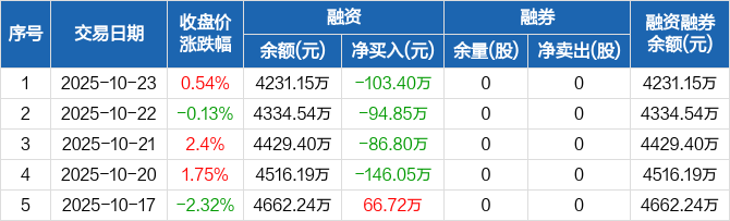 科捷智能:连续4日融资净偿还累计431.1万元(10-23)