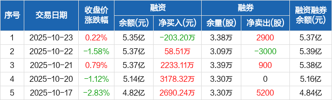 泛微网络:融资净偿还203.2万元,融资余额5.35亿元(10-23)