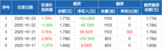 键凯科技:融资净偿还153.08万元,融资余额1.77亿元(10-23)