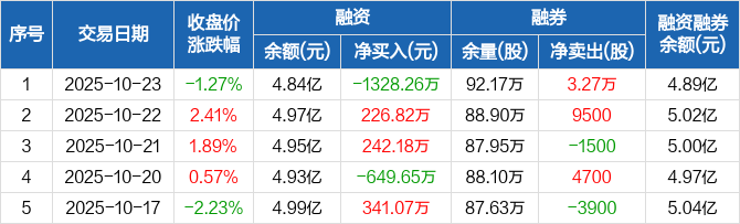 城建发展:融资净偿还1328.26万元,融资余额4.84亿元(10-23)