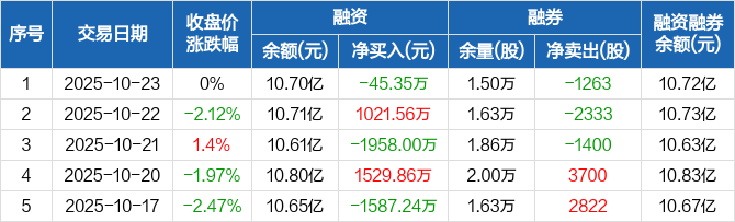 联影医疗:融资净偿还45.35万元,融资余额10.7亿元(10-23)