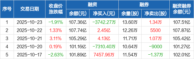 中科曙光:融资净偿还3742.27万元,融资余额107.36亿元(10-23)