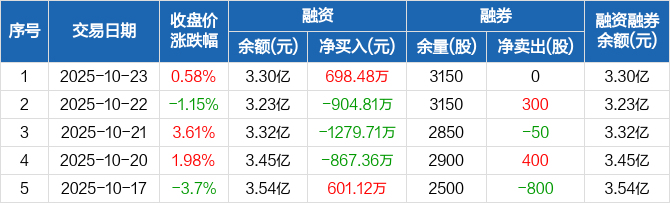 日联科技:融资净买入698.48万元,融资余额3.3亿元(10-23)