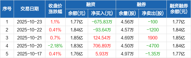 航民股份:融资净偿还675.83万元,融资余额1.77亿元(10-23)