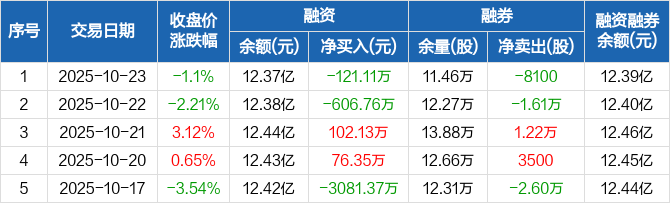 中国巨石:融资净偿还121.11万元,融资余额12.37亿元(10-23)