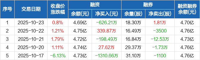 远东股份:融资净偿还626.21万元,融资余额4.69亿元(10-23)