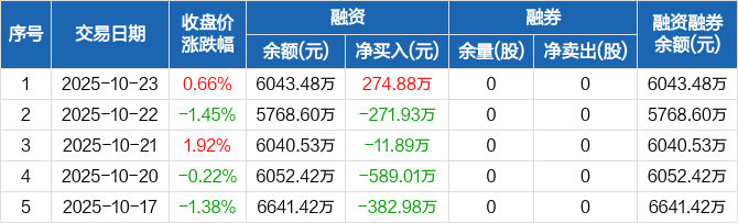 西昌电力:融资净买入274.88万元,融资余额6043.48万元(10-23)
