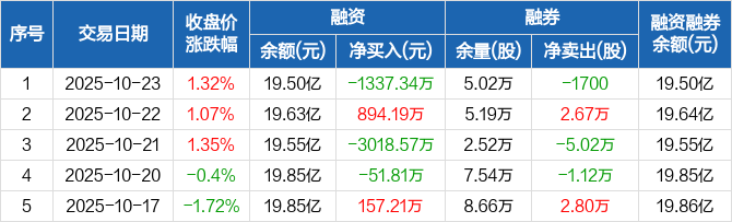 中国化学:融资净偿还1337.34万元,融资余额19.5亿元(10-23)