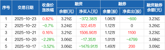 峰岹科技:融资净偿还372.38万元,融资余额3.21亿元(10-23)