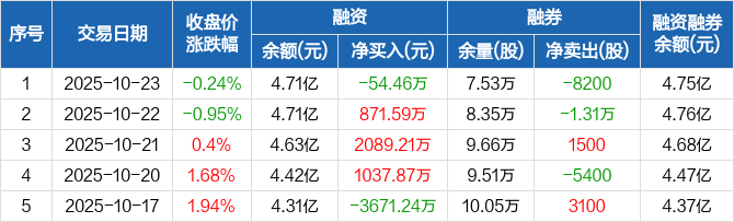 春秋航空:融资净偿还54.46万元,融资余额4.71亿元(10-23)