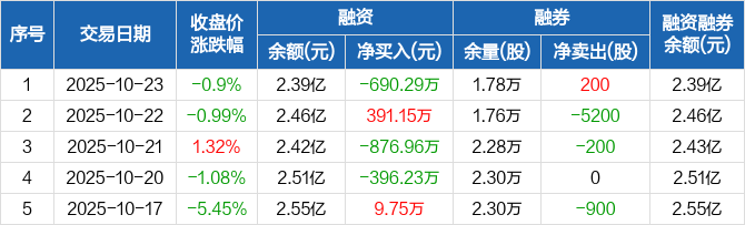 中国电研:融资净偿还690.29万元,融资余额2.39亿元(10-23)