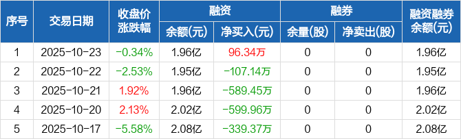 力合微:融资净买入96.34万元,融资余额1.96亿元(10-23)