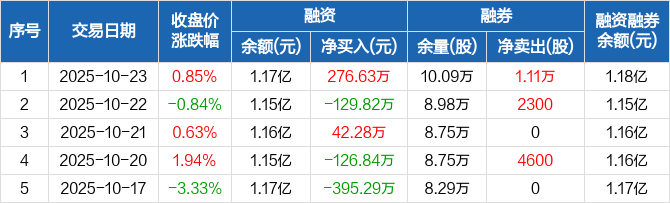 风范股份:融资净买入276.63万元,融资余额1.17亿元(10-23)