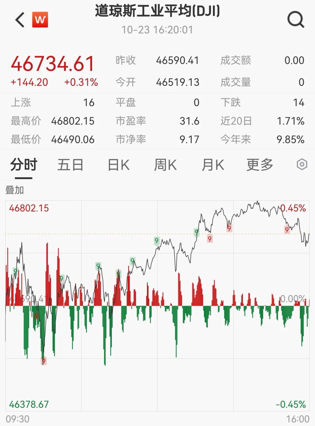 美国三大股指全线收涨,道指涨0.31%,标普500指数涨0.58%,纳指涨0.89%。霍尼韦尔国际涨6.81%,3M公司涨2.61%,亚马逊涨1.44%,领涨道指。