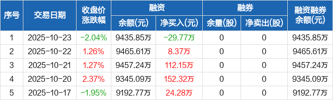 襄阳轴承:融资净偿还29.77万元,融资余额9435.85万元(10-23)
