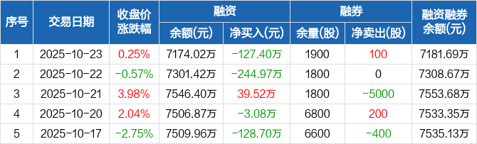 光大同创:融资净偿还127.4万元,融资余额7174.02万元(10-23)