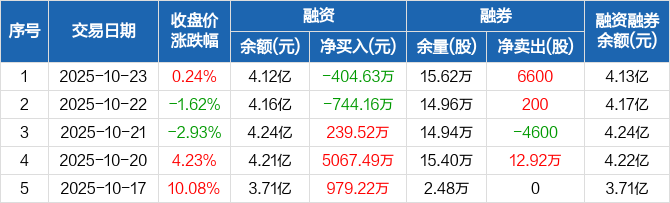 沧州明珠:融资净偿还404.63万元,融资余额4.12亿元(10-23)