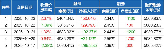 致欧科技:融资净买入450.64万元,融资余额5464.34万元(10-23)