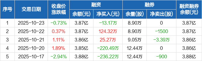 雷科防务:融资净偿还13.17万元,融资余额3.87亿元(10-23)