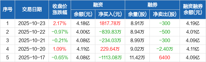 陕西能源:融资净买入1817.78万元,融资余额4.18亿元(10-23)