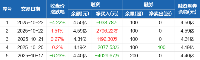波长光电:融资净偿还938.78万元,融资余额4.5亿元(10-23)