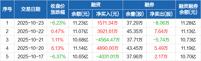 楚江新材:融资余额11.23亿元,创历史新高(10-23)