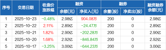 新朋股份:融资净买入904.08万元,融资余额2.98亿元(10-23)
