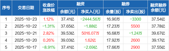 亿纬锂能:融资净偿还2444.56万元,融资余额37.41亿元(10-23)
