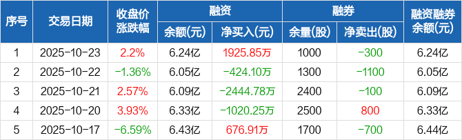 恒铭达:融资净买入1925.85万元,融资余额6.24亿元(10-23)