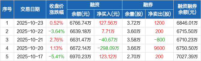 铭利达:融资净买入127.56万元,融资余额6766.74万元(10-23)